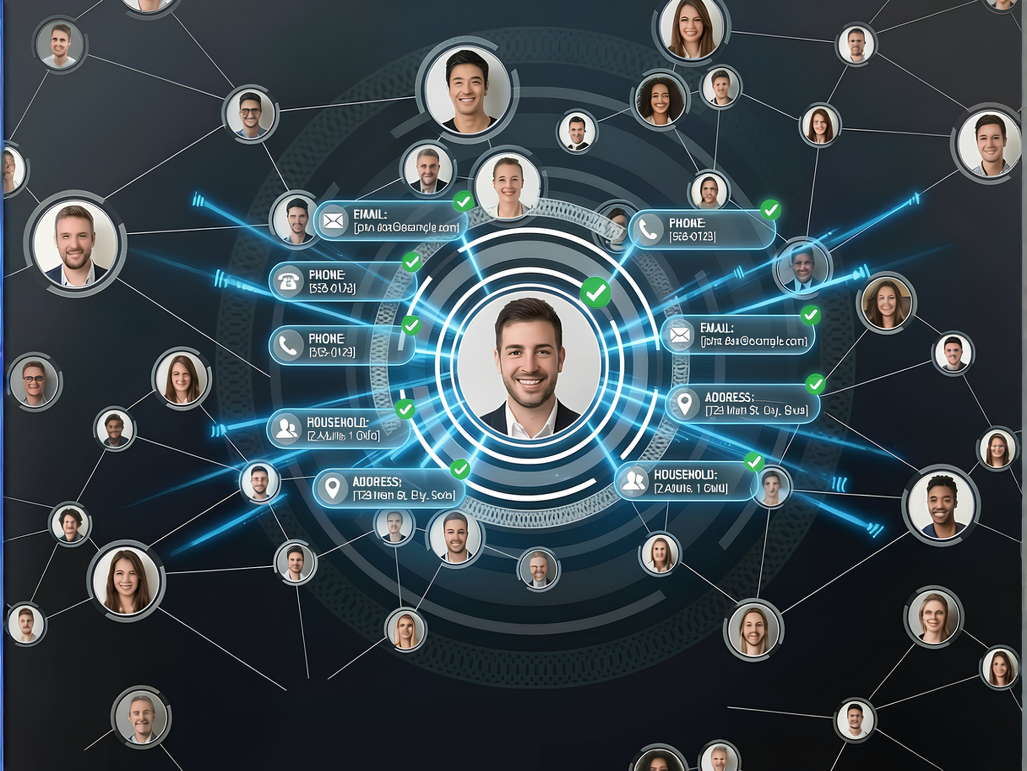 Digital illustration of clean consumer records connected through verified identities within a structured data environment.